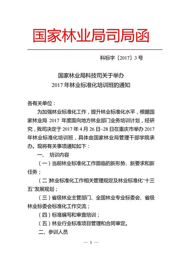近日,根据国家林业局司局函《国家林业局科技司关于举办2017年林业标准化培训班的通知》(科标字〔2017〕3号),BB贝博艾弗森官方网站再次获批承担国家林业行业标准《林下白及种植技术规程》(2017-LY-087)的研制工作,是获批承担本年度国家林业行业标准修制订的唯一地方...