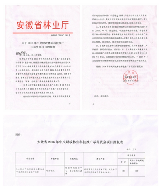 近日,根据国家林业局办公室与财政部办公厅《关于下达2016年林业重点工作任务的通知》(办规字[2016]44号)以及安徽省林业厅《关于2016年中央财政林业科技推广示范资金项目的批复》(林科函[2016]591号),由BB贝博艾弗森官方网站申报的2016年中央财政林业科技推...
