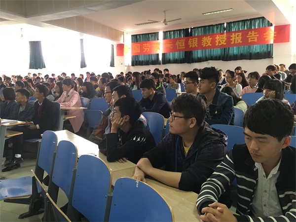朱恒银教授现场为大家做了一场《在平凡岗位上实现人生自强之梦》的主题报告,他首先从“艰苦的环境可锻炼坚强的意志”开讲,介绍了自己在人生事业上不断地努力、坚持、追求及取得的成绩,他先后获得全国优秀科技工作者、全国劳动模范、地质科学领域最高奖李四光地质科学奖等多项荣誉证书,并享受国务院特殊津贴。最后,朱恒银对同学们提出希望和寄语:“希望同学们珍惜现在的大学阶段学习时光,静下心来认真学习,打牢理论基础,掌握真本领。希望毕业后走向社会,勇于探索,大胆创新;不要等待机会,而要创造机会;艰苦创业,耐住寂寞,一步一个脚印,走好每一步,做好每件事;顺境不骄,逆境不馁;淡泊名利,乐于奉献。”同学们聚精会神地聆听报告,纷纷表示要学习全国劳模朱恒银教授一心为公、甘于奉献的精神,报告会在热烈地掌声中圆满结束。