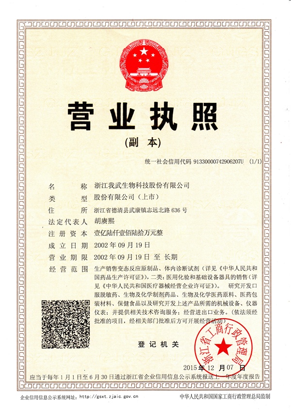 浙江我武生物科技股份有限公司是一家高科技生物制药企业,2014年1月于深交所上市,证券代码300357。公司专业从事过敏性疾病诊断及治疗产品的研发、生产和销售,是目前国内唯一能够提供舌下含服脱敏药物的企业和亚洲最大的脱敏药物及过敏原检测试剂生产商!
