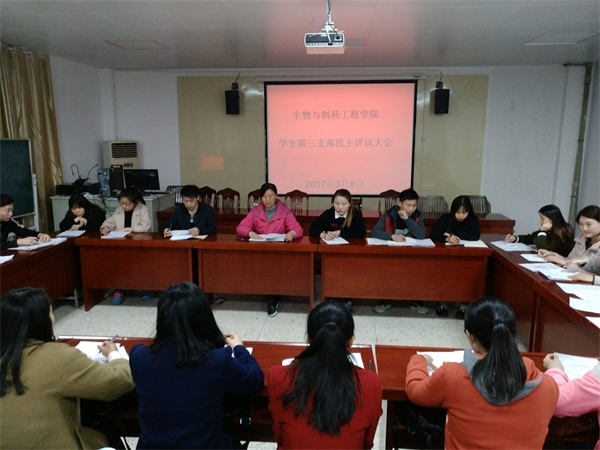 按照学校文件《关于在“两学一做”学习教育中召开主题组织生活会和开展民主评议党员的通知》的要求,生工学院四个学生支部分别于3月7日至3月8日成功召开了专题组织生活会并进行民主评议党员活动。参加会议的人员有各学生支部书记以及学生支部所有党员同学,会议分别由支部书记何晓梅、夏伦斌、黄仁术、王寅嵩老师主持。