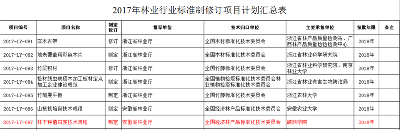 近日,根据国家林业局司局函《国家林业局科技司关于举办2017年林业标准化培训班的通知》(科标字〔2017〕3号),BB贝博艾弗森官方网站再次获批承担国家林业行业标准《林下白及种植技术规程》(2017-LY-087)的研制工作,是获批承担本年度国家林业行业标准修制订的唯一地方本科院校,也是BB贝博艾弗森官方网站继2012年《霍山石斛种苗繁育及栽培技术规程》(2012-LY-129)、2014年《太子参种苗繁育及栽培技术规程》(2014-LY-156)、2015年《霍山石斛基源植物鉴定技术规程》(2015-LY-152)、2016年《霍山石斛枫斗加工及检测技术规程》(2016-LY-018)之后的第五次获批国家林业行业标准修制订项目的立项。