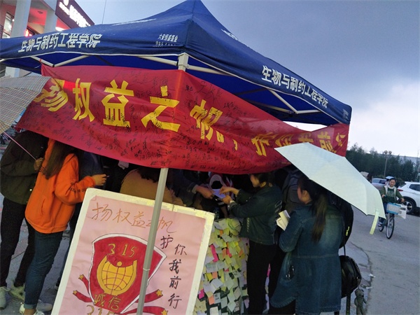 此次活动内容丰富并且搭建了一个供同学们了解和行使消费者权利的平台,同时也唤醒了他们的自身维权意识。“3.15”维权日活动的成功举办,能够充分展现我院学生会开展相关工作的高效率以及必要性,对推动建设和谐校院具有重要的意义。(图、文/生工学院团总支 审核/余学玉)