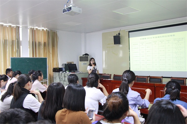 汪家雯从“公务员”及“选调生”两个概念入手,让同学们迅速进入主题,接着又拓展到相关名词“事业单位”的概念理解。之后,她从安徽公务员时间表、报考流程、一般公务员及选调生报考职位、笔试与面试等方面向我们具体地剖析公务员考试。在报考职位方面,她认为专业匹配很重要,也提醒我们注意此类问题。为了让我们更直观地了解到笔试题目,针对行测与申论两部分汪家雯特意展示了相关真题,并耐心解答,指出仔细分析问题才是解题秘诀所在。在公务员面试方面,汪家雯用自己的亲身经历总结出面试需要注意的事项以及她的心得。在最后的问答环节中,同学们踊跃发言,汪家雯耐心、详细地解答。至此,公务员考试经验交流会圆满结束。