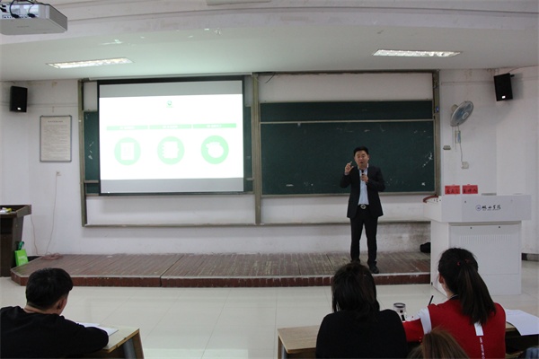 讲座开始,主持人左瑞华对主讲人高亚飞、蒋广志以及参与的所有成员表示了热烈欢迎,现场气氛活跃。随后,主讲人高亚飞对畜牧业绿色发展循环模式做了简单的介绍并播放了一段关于安徽浩翔有限公司的宣传视频,视频中介绍了安徽浩翔有限公司的经营理念和浩翔精神,让同学们更加透彻的了解了安徽浩翔有限公司。之后,主讲人蒋广志介绍了生猪育种,从选种到饲养再到销售进行了全面的讲解,让学生们了解到养猪产业的技术。此外,他还向同学们介绍了安徽浩翔有限公司在畜牧产业中的企业优势:地理优势、强强联合、朝气蓬勃的团队、优秀的领导者等。然后,现场进行了答疑解惑的环节,同学们积极提问,主讲人耐心解答。最后,左瑞华对此次讲座进行了总结,同时表达了对安徽浩翔有限公司发展前景的祝福。