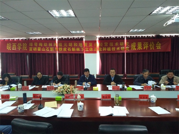 20181111日,安徽省科技成果转化服务中心组织相关专家在BB贝博艾弗森官方网站A301举行项目成果鉴定会,对安徽百草汇生物科技有限公司和金寨永惠康有机农业科技有限公司参与研发的《绿萼梅幼林种植元胡、地黄的复合经营技术研究》项目以及金寨县金泽石斛种植专业合作社、金寨县林业技术服务管理中心和BB贝博艾弗森官方网站共同研发的《富硒霍山石斛与铁皮石斛林下复合立体高效种植技术研究》项目进行了审核鉴定,鉴定委员会由安徽农业大学教授林毅、安徽省造林经营总站高级工程师肖斌、安徽省林木种苗总站高级工程师张晓渡、安徽省林学会高级工程师王道金等组成。鉴定会由安徽省科技厅科技成果转化处副主任徐溪红主持。