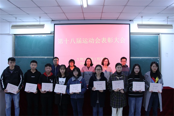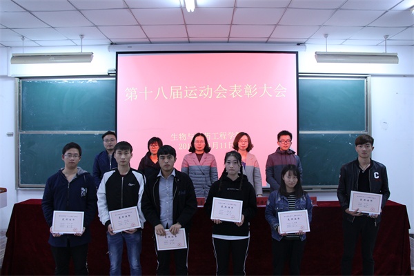 白驹过隙,秋风送爽,第十八届校运动会已结束两周,为了表彰生工运动健儿及参与人员在校运动会期间取得的六连冠成绩,生工学院于2018年11月11日14点30在C102举行第十八届运动会表彰大会。我院党委副书记、副院长郑红蕾,团总支书记薛荷,辅导员姚静、熊延椿、张光健,全体学生会成员、运动员代表和各班级代表参加了大会。大会由薛荷主持。