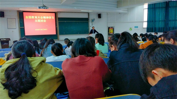 2018年9月10日全国教育大会召开,为深入学习贯彻落实全国教育大会的精神,加强我院学生对国家坚持深化教育改革创新、努力构建德智体美劳全面培养的教育体系的了解,生工学院按照学校的统一部署和安排,在各班级中积极开展了学习全国教育大会精神主题班会。