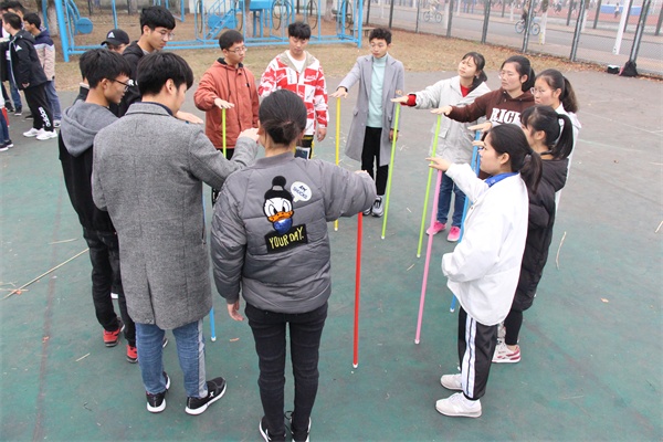 12月2日上午八点半,活动拉开序幕,吴老师首先将全体成员分成两队,让每队都选出自己的队长和政委,并将不能参与活动的同学派发了其他任务。大家围着训练基地慢跑三圈进行热身运动后就开始了“翻大牌”、“能量传递”和“不倒森林”等活动项目。活动期间,各个成员配合默契,积极参与,讨论如何更好的完成游戏。每个活动结束后,除了小小奖罚外,更多的是在彼此分享感受和看法的同时学会了如何更好的协作、沟通、鼓励和包容……同学们纷纷表示这是一次十分有意义的活动,收获满满。