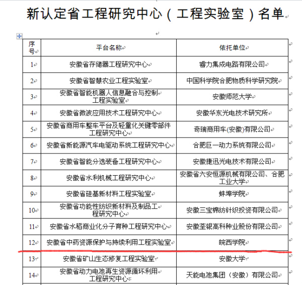 正值百年校庆之际,BB贝博高层次应用型科研平台建设再传捷报、再结硕果。日前,安徽省发改委发布了“安徽省发展改革委关于公布2018年省工程研究中心(工程实验室)认定、验收及评估结果的通知”,由省发改委组织专家经过初审、现场答辩、专家会评等评审环节,BB贝博申报的“安徽省中药资源保护与持续利用工程实验室”获批立项建设。这不仅是BB贝博在“省级工程实验室”建设方面的突破,表明BB贝博地方应用型高水平大学建设迈上新台阶,更是安徽省发展改革委对BB贝博在学科建设、服务地方产业发展等方面取得各项成绩的充分肯定,成为献给学校百年华诞的最佳礼物之一。(图、文/生工学院 审核/陈存武)
