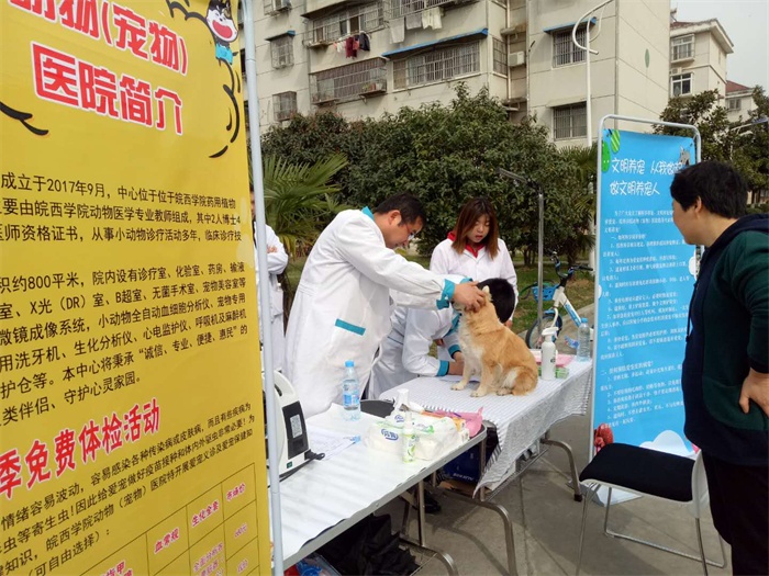 3月26-27日,生工学院小动物诊疗中心在夏伦斌和曹建文老师的带领下,在新区家属区开展宠物春季免费体检活动,普及文明养宠知识。