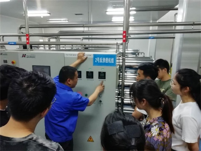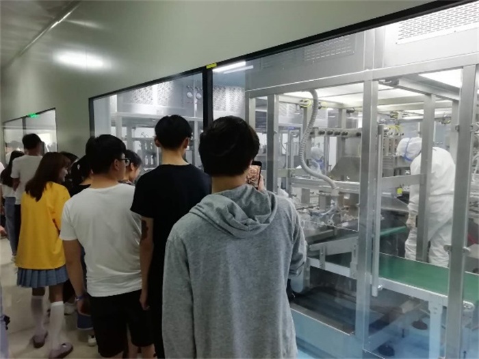 在企业总经理陆星的引导和解说下,大家先后见习了厂区现代化的GMP纯水制备车间、塑瓶软袋输液生产车间、玻璃瓶输液生产车间、原料药生产车间和灌装包装车间,熟悉了制药企业的厂区分布和功能结构,了解到原料药生产、成品药加工、灌装的全过程,以及产品生产车间的布局及要求,也了解到制药产业的发展现状和发展趋势。