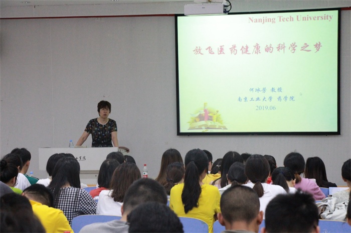 在题为“放飞医药健康的科学之梦”的报告中,何冰芳从自己上大学谈起,结合了自己的科研经历,介绍了天然产物挖掘、新型功能寡糖制备、肠道菌群与人体健康等热点问题,深入浅出分享了科研团队在天然药物开发、新型功能寡糖制备的最新成果。江苏省优青项目获得者姜天玥,从自己博士阶段的研究和国外的生活谈起,以纳米脂质体药物传送系统为研究对象,分享了自己一路走来的研究成果。报告会持续了2个多个小时,两位老师的幽默风趣,赢得掌声不断,也开阔了同学们的视野,强化了同学们努力学习、致力于科学研究的信心。