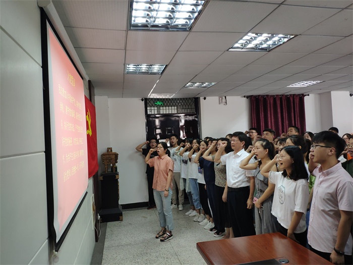 628日上午9时,生工学院党委在A301举行2019年上半年新发展党员入党宣誓仪式。生工学院党委书记余学玉、本期新发展的新党员,以及全体专兼职辅导员参加活动。入党宣誓仪式由生工学院党委副书记郑红蕾主持。