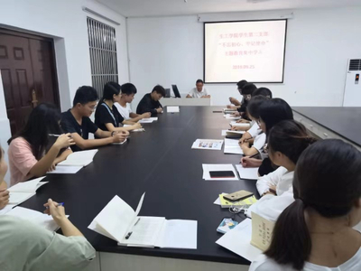 四个教工党支部和五个党学生支部在主题教育集中学习会议上重点学习了《习近平在“不忘初心、牢记使命”主题教育会议上的讲话》和《习近平关于“不忘初心、牢记使命”论述摘编》,明确了主题教育的意义、总要求、根本任务、具体目标和主要措施。在集中研讨会上,大家围绕党的政治建设、理想信念、宗旨意识 、担当作为、政治纪律和政治规矩、党性修养、廉洁自律这八个方面进行了交流发言。每一位党员理论联系实际,结合自身工作实际,畅谈初心和使命。