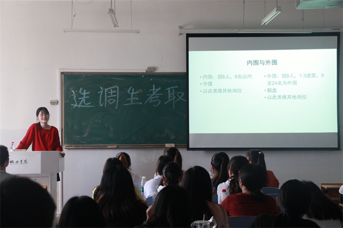 为了让学生了解选调生的发展前景,以及清楚怎样才能更好的考取选调生,BB贝博艾弗森官方网站于9月27日下午2:00在综合楼303召开选调生经验交流分享会,分享会由两位成功考取选调生的毕业生代表潘蒙和刘伟主讲,生工学院团总支副书记熊延椿以及全体正式党员、预备党员和部分学生干部参加交流会。会议由熊延椿主持。