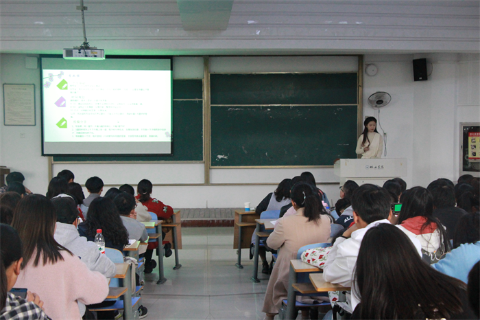 四位优秀毕业生代表依次开始发言,杨明月同学从为什么要考研、报考与择校、如何准备、学习模块四个方面为大家分享了自己在考研过程中的一些宝贵经验,同时表示追梦的路上很辛苦,但天道酬勤,一定会成功的!随后,查萍萍和王丹两位同学同样分享他们考研之旅中的经验,给大家推荐了一些好的学习工具和老师以及介绍了考研过程中的一些注意事项等等,积极为大家答疑解惑,现场气氛活跃。高温婷同学详细地为大家分享了一下自己在考研复试真实经历,幽默风趣的介绍,赢得了大家阵阵掌声,从复试落选、临近放弃,再到重拾信心、抓住机遇,最终取得成功。她表示考研不仅能够开拓你的眼界,扩大人脉,遇到更多的优秀人才,而且更重要的是能够让自己在各方面得到提升,使自己变得更加优秀,并鼓励大家积极考研。最后,张光健老师总结了四位优秀毕业生代表的发言,合理安排时间,做好职业生涯规划,学好基础课程,希望大家积极备考。