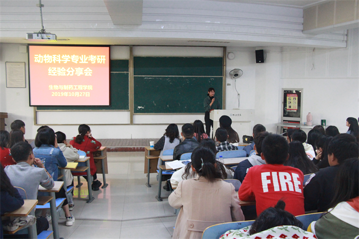 根据“不忘初心、牢记使命”主题教育调研结果,为加强动物科学和动物医学专业学生对考研知识和经验的了解,提高学生考研热情,明确考研目标,掌握相关考研技巧,了解更多考研信息。BB贝博艾弗森官方网站于10月27日下午1:00在C205举办了动物科学专业考研经验分享会。参会人员有生工学院2018级动物科学专业辅导员张光健、原动物科学1302班、现研究生就读于河南工业大学的高温婷,原动物科学1402班现研究生就读于南京农业大学的王丹,原动物科学1501班、现研究生就读于南京农业大学的查萍萍,原动物科学1501班、现研究生就读于安徽农业大学的杨明月4位动物科学专业优秀毕业生代表,2017级、2018级动物科学和动物医学专业全体同学。