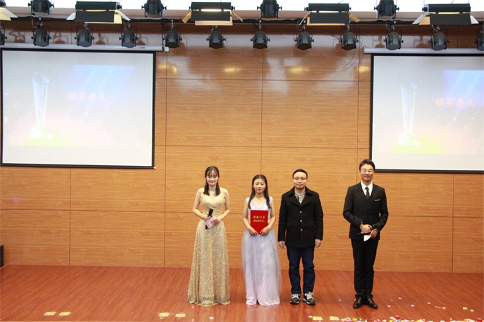 通过初赛和复赛的重重选拔,共有十位选手入选决赛。决赛分为两轮,第一轮单人主持,第二轮双人主持,两轮结束后,选出最终排名。活动伊始,陈媛媛、周昊晴、吴薇三位同学表演的舞蹈《Adios》拉开比赛帷幕,随后十位选手依次登台进行模拟主持。十位选手均聚焦社会热点,以各个热点为主题,主持内容丰富多彩,同时也引发人们的深思。为了缓解比赛的紧张气氛,第一轮结束后进行了“摇一摇”和“抱一抱”小游戏。紧接着进行第二轮双人主持,各位选手的主持都异常精彩,《缘来如此》、《婚礼》等模拟主持更是将现场气氛推到了高潮。紧张刺激的比赛结束后,由王寅嵩老师就主持主题挑选、舞台表现力、音色音准等各方面对选手进行了点评。最后进入颁奖环节,朱子涵凭借她富有感染力的舞台表现、灵活的现场应变能力摘得桂冠,钱宝玉、蒋润荣获二等奖,吴艳、彭雨辰、刘言喜获三等奖。至此,本次主持人大赛圆满结束。