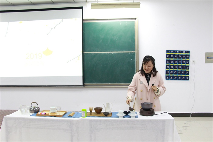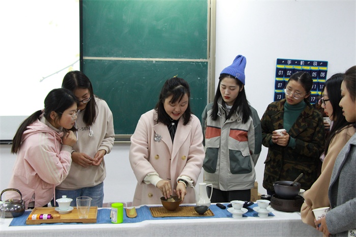 首先,主讲人用广为流传神农尝百草的神话故事来引起同学们内心的共鸣,进而更好的讲述中华茶文化的起源。随后,由中国古代茶圣陆羽的著作《茶经》为历史背景,引出中国茶文化多元史的讲述。对于茶文化有诸多的历史记载,茶兴于唐盛于宋,并在以后的时代中不断发展,不同时代有着不同时代的制茶方式。同时由于茶文化的逐渐繁荣及人们对茶的喜爱,而演变出了茶叶商品化的发展史。时代的变迁也带来了茶的变迁,从一开始的药用到祭祀、药食、饮用到如今的商品化。理论知识完全满足不了同学们对茶文化的好奇心,正所谓实践是检验真理的唯一标准,理论知识要与动手实践相结合才能相得益彰。现场进行的煮茶、沏茶的一系列实践活动的进行,使众多同学跃跃欲试,吸引了众多同学的上前观看及品尝。积极参与、乐于求师问道的同学们为现场增添了不少欢乐。一番动手实践结束后,提问环节同学们的频频发问,积极踊跃地参与到其中,也使同学们收获颇多。