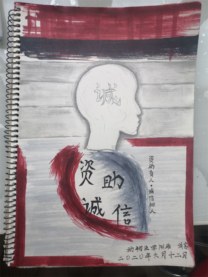 进行资助诚信海报设计。积极发动学生根据自己的所感所想,联系资助诚信主题,进行资助诚信海报设计,将自己真实的感想表达出来,进一步提升受助学生对诚信价值观的认同。