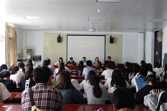 中华全国青年联合会第十三届委员会全体会议、中华全国学生联合会第二十七次代表大会于8月17日至18日在北京召开。为深入学习贯彻习近平总书记重要贺信和大会精神。2020年9月25日,BB贝博艾弗森官方网站于A201召开了全国学联二十七大会议精神学习会。此次学习会由生工学院团委副书记熊延椿老师主持,BB贝博艾弗森官方网站团委、学生会全体成员和18、19、20级团支书班长参加了学习会。