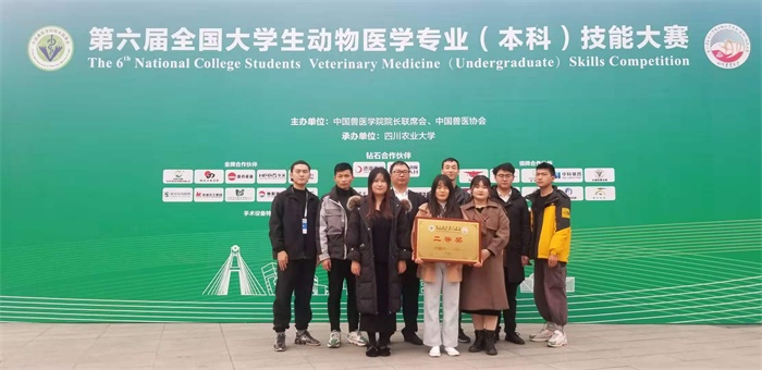 2020年11月27日至28日,由中国兽医学院院长联席会和中国兽医协会主办的第六届全国大学生动物医学专业技能大赛在四川农业大学举行,来自全国68所高校组队参赛,经过两天的激烈角逐,BB贝博参赛代表队(动物医学专业张壮壮、尹子健、但小贝、乔方方、严雪五位同学)在指导老师佘德勇、徐海军、蒋平、徐光沛、贾哲等老师的悉心指导下,在大赛中展现了扎实的专业知识和操作技能,并获得团体二等奖的好成绩!