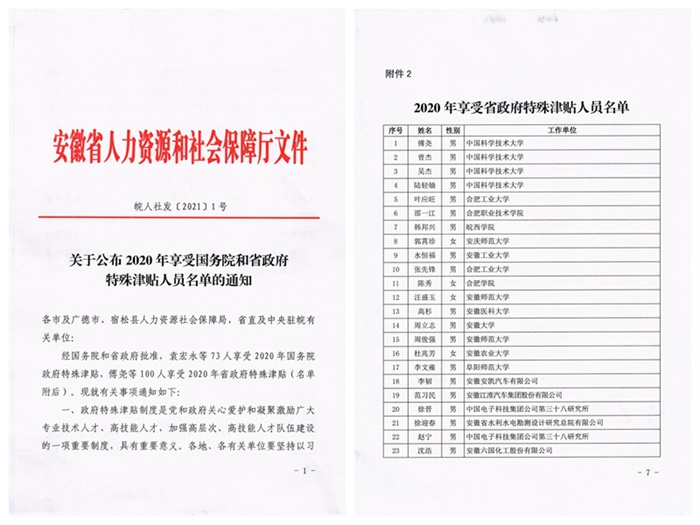 享受国务院和省政府特殊津贴人员的选拔和推荐工作,是党中央、国务院和省委、省政府对专业技术人员的关怀和支持,是对专业技术人员的劳动成果的肯定和嘉奖。此次全省共100人享受2020年省政府特殊津贴,韩邦兴教授是BB贝博唯一人选,是生工学院继2016年陈乃富教授之后,又一位享受省政府特殊津贴的专家,也是省委、省政府对BB贝博“大别山林下中药资源保护与利用”科研团队所做工作的充分肯定。