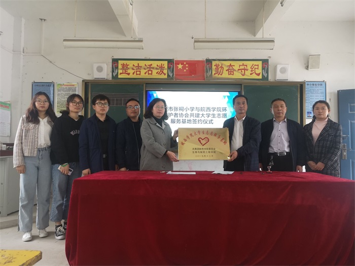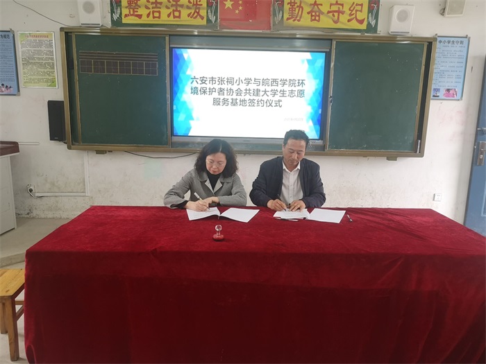 2021年4月20日下午,BB贝博艾弗森官方网站大学生环境保护者协会与六安市张祠小学共建志愿服务基地仪式在六安市张祠小学举行。BB贝博艾弗森官方网站党委副书记郑红蕾、团委副书记熊延椿、协会指导老师张光健,张祠小学校长荣发武、副校长文才兵、教师储金霞、黄玉兰,环境保护者协会常务副会长田文静、副会长胡馨怡等参加会议。