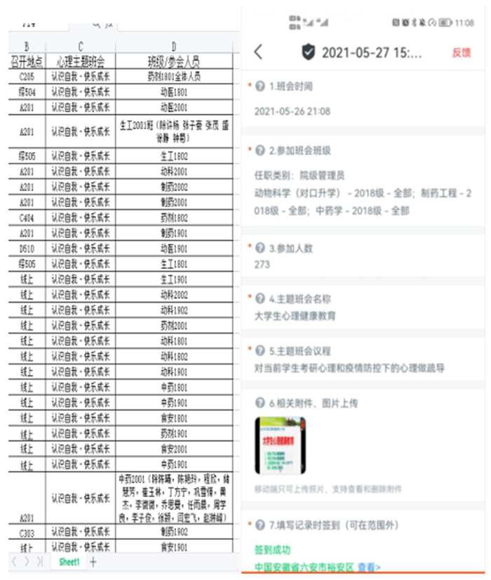 二是学院全体专兼职辅导员对所带班级孤儿、单亲、留守儿童、父母离异、重组家庭、贫困家庭、学习困难以及复学的学生进行谈心谈话,全面摸排他们的心理健康状况,给予更多的关心和帮助,填写谈心谈话记录,及时进行心理问题评估,建立心理危机预防与干预动态信息库,以便采取有效措施进行干预。同时,各班级心理委员通过寝室走访、召开寝室长座谈会等对本班全体同学进行心理健康状况摸排,填写心理健康状况摸排表,及时上报需要关注的心理问题学生,必要时转介至心理健康教育与咨询中心,有效利用三阶四级心理危机预防干预机制,助力学院学生健康成长。
