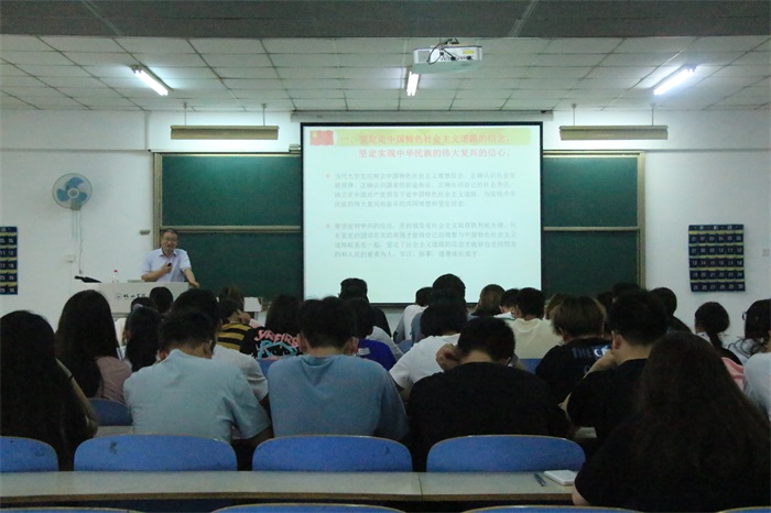 本次课程宣平老师提到最多的就是中国特色社会主义道路,并将古今中外的发展道路做了大量的对比,以事实证明要坚定中国特色社会主义理想信念,同时还教育同学们将立志高远与始于足下相结合,并具体指导大家在大学里如何坚定和实现自己的理想信念。大量生动鲜活的实例与具体可操作的讲解,使得现场的每一个位同学都被宣平老师的讲课内容所吸引,深受鼓舞与感动。