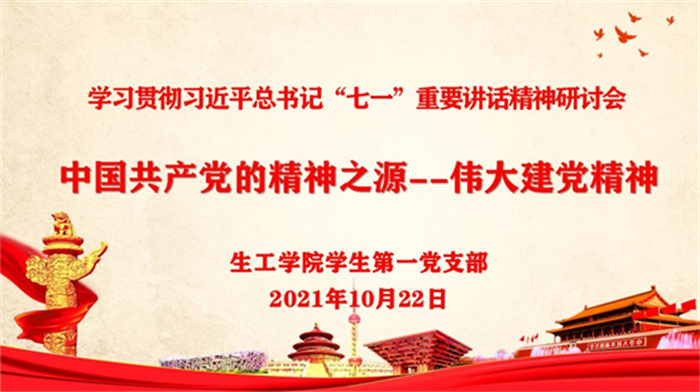为深入学习贯彻习近平总书记“七一”重要讲话精神,进一步深化党史学习教育,10月22日晚,生工学院学生第一党支部采用线上形式召开了感悟伟大建党精神学习研讨会。