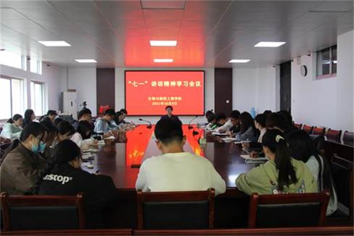 开展红色话剧大赛。2021年10月20日,生工学院成功举办红色话剧大赛,参赛话剧成员分别表演了“党啊,亲爱的妈妈”、“红色记忆重回”、“播火者李大钊”、“破晓”、“恰同学少年——战火中的大学生”等作品,参赛同学们通过现场生动表演,展现了百年党史中进步青年崇高的理想信念和深厚的爱国主义情怀。通过此次红色话剧大赛,丰富了党史学习教育形式,引导学生更深入地学习党史、新中国史、改革开放史和社会主义发展史。