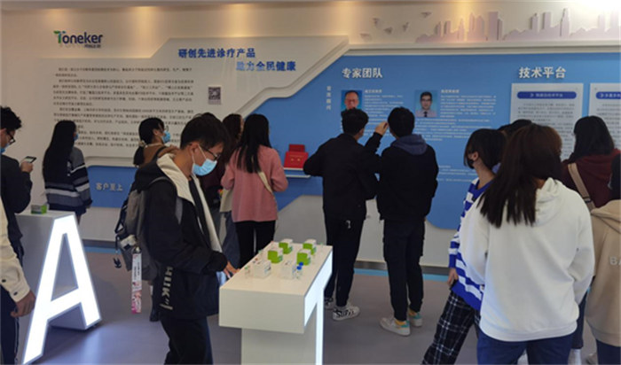 安徽同科生物科技有限公司是一家集研发、生产及销售于一体的专注于生命科学和医学领域的高科技企业,公司致力于癌症,产筛、个性化用药诊断领域的系列分子诊断试剂开发与生产,服务于我国医疗诊断行业快速发展。公司经理尹明理带领大家参观了企业的研发场所、生产车间,并向同学们介绍了企业文化及发展方向等情况。