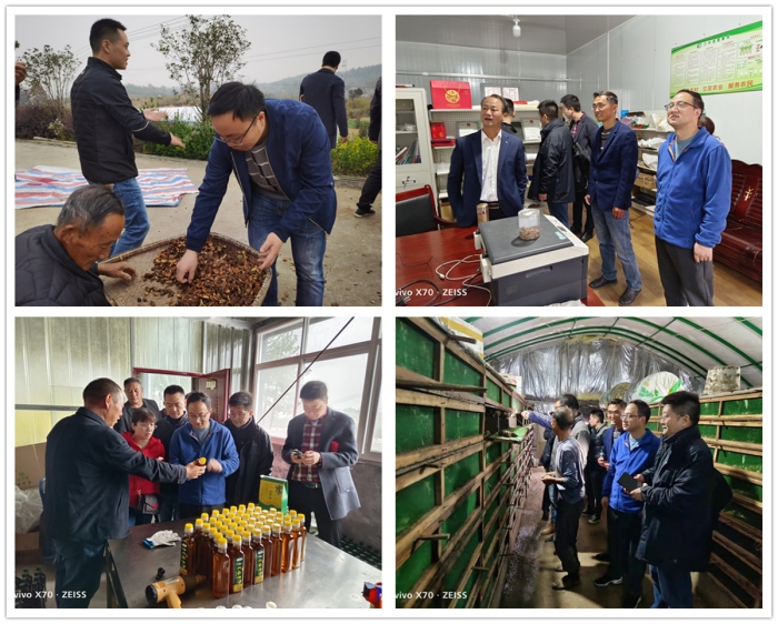 首先,在西河口乡潘岔村支部书记天胜同志和梦哥家庭农场总经理魏正宇陪同下,大家先后参观了野生油茶生态种植基地、林下黄精种植区、白玉蜗牛养殖基地以及茶油标准化加工车间,详细了解目前中药材种植加工及特色养殖等情况,与企业负责人、农户进行了深入交流,产业种、养殖过程中所关心的相关技术问题进行了现场解答和指导。