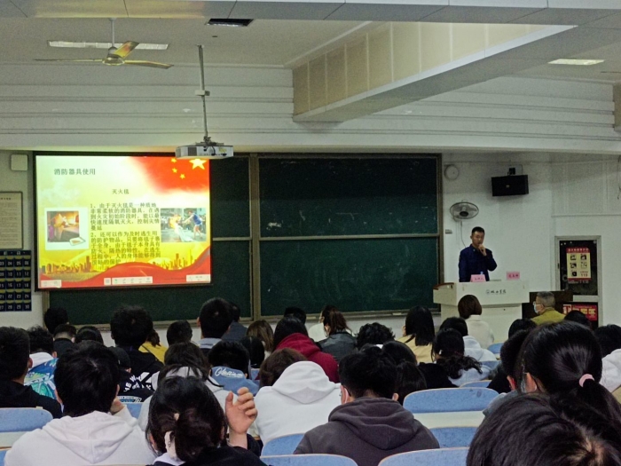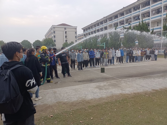 裕安区消防救援大队办公室文书、应急通信班长、消防安全培训宣讲员范玉坤来到C205为近200名师生开展消防知识讲座,通过近年来发生在高校学生宿舍、实验楼等多个典型案例,详细介绍了室内防火、火灾扑救、自救逃生的常识及注意事项,结合灭火器材的种类及性能等内容,向全院师生全面科普了消防相关知识。应急疏散演练模拟C205教室在上课期间出现火情,学院立即启动师生紧急疏散预案,在充足的准备和细致的组织下,所有师生均在较短的时间内撤离到了安全区域。在灭火救援演练中,裕安区消防救援大队派出消防救援车一辆参与现场演练,消防员们向到场师生重点演示了干粉灭火器与高压水枪的使用方法。学生们在认真听讲后,积极踊跃的担当消防员的角色,按照灭火器的正确使用步骤对现场布置的“起火点”进行了灭火演练,并参与到高压水枪灭火场景中来。