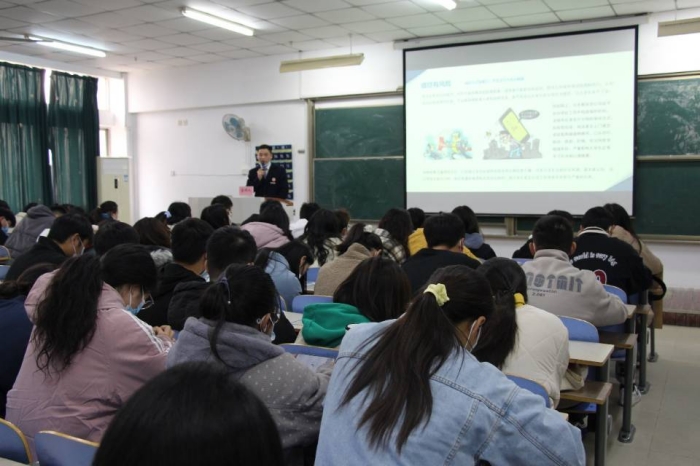 讲座开始之前,张硕老师对近期学院开展的各项反诈宣传活动进行了回顾与总结,并对六安市交通银行金融专家的到来示欢迎和感谢。汪礼银以“大学生易误入的骗局”“校园贷”“网络借贷”三大主题为讲座内容,向同学们介绍了“刷单兼职诈骗”“网络购物诈骗”“冒充客服诈骗”“抖音平台营销视频以假乱真诈骗”四种诈骗种类并列举了相关事例,使同学们切实地了解到了网络诈骗的危害。讲座通过大量图片与几段短视频,着重对校园贷前世今生及推广运作的进行讲述,使同学们切实的了解到了借贷的风险。最后汪礼银告诫同学们要警惕网络的十二个“凡是”,避免上当受骗。整场讲座气氛活跃,同学们收获了很多反诈知识。
