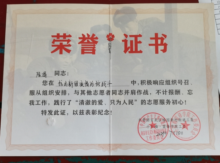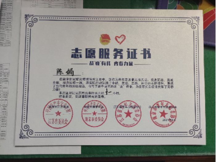 不忘青春使命,彰显青年担当。常态化疫情防控背景下,广大生工学院志愿者积极宣传疫情防控知识,主动地进行无偿献血,彰显青年志愿者社会责任感和青年使命意识。2021年团省委、省文明办、省民政厅联合主办的第十三届“安徽省青年志愿者优秀个人”评选中,制药工程1801班刘莉彬同学获得“安徽省青年志愿者优秀个人”称号。2021年7月,在南京疫情最严重的时候,动物科学1801班陈娟同学积极向当地团委报道,参与了疫情防控工作当中去,白天工作没时间,她就晚上上半夜去参加志愿服务,也因此获得了江苏省团委的认可。