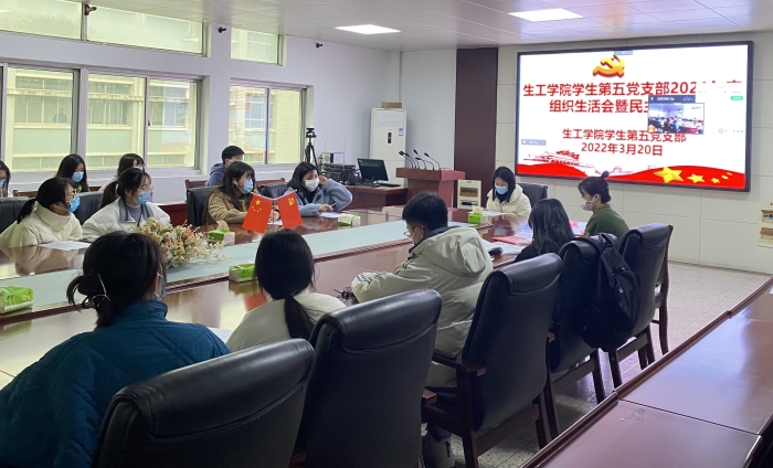 2022年3月20日晚,生工学院学生第五党支部召开2021年度组织生活会暨民主评议党员会。党支部全体党员参加会议,会议由党支部副书记高韵主持。