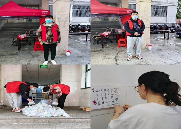 食品质量与安全专业2019级党员王茹雪、夏瑜分别在49日、411日、415日在老区女生宿舍4栋楼下核酸检测点参加核酸检测志愿服务,协助医务人员做好核酸检测采样、协助辅导员维持秩序等,每次都要工作四五个小时;党员薛晴晴和李前前分别于410日、412日在女生宿舍205楼前值守,帮忙给被封闭管理同学分发饭菜等。生物工程专业2019级党员朱紫娟、张文娟、雷颖、沈慧洁等多次轮流在205栋宿舍楼做志愿者,为同学们分发饭菜、配送物资等。
