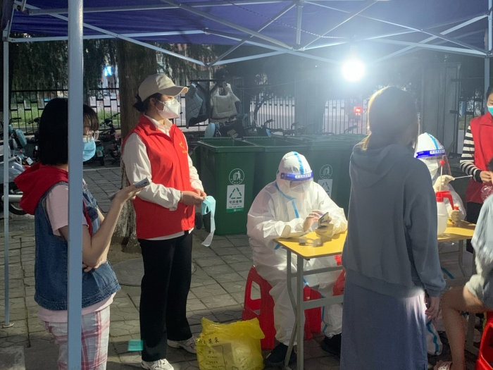 薛晴晴,女,学生一支部预备党员。第一时间报名申请成为一名志愿者后,总是第一时间赶到值班现场,搬运午餐、分发午餐、帮忙递送生活物资……天很热,虽然很辛苦,但是看到帮助了别人,她却很快乐。每天的核酸检测需要同学们有序的配合,而完成这项任务少不了志愿者的帮忙,她每次都积极到核酸检测点协助辅导员和医护人员完成核酸检测任务,有时遇到同学们的误解,她总是置之一笑,“身为一名党员,就应该发挥党员的先进性,身先士卒,为同学们服务。”