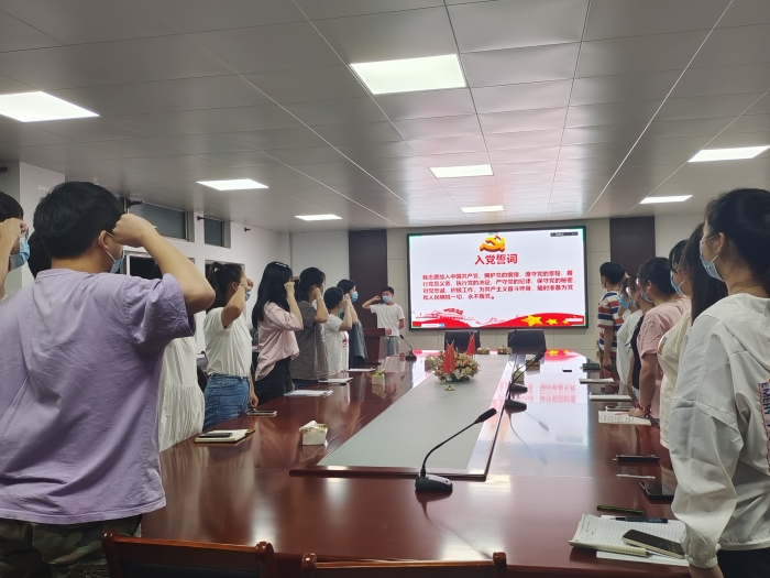 会议开始,由吴蒙娜等12名预备党员依次汇报在一年预备期内的思想、学习、工作以及生活上的表现、收获及感悟等情况。随后,大会对12名预备党员的转正议题进行讨论,由党支部成员分别对他们在预备期的表现作出评价,指出该同志在这一年预备期内的优缺点及有待改善和提高的地方,最后具有表决权的正式党员进行不记名投票,吴蒙娜等12名预备党员全票通过成为中共正式党员。会议最后,全体党员在支委委员宁克壮的带领下重温了入党誓词。