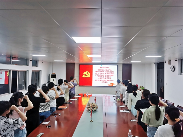 随后,支部开展了“三重温”主题党日活动。2022年省优秀毕业生、食品质量与安全专业党员吴月琴满怀深情地重温了自己的入党志愿书;2022年校优秀毕业生、生物工程专业党员刘兴悦重温了自己在党组织培养教育下的谈话和成长过程;最后全体党员重温了入党誓词,全体党员面向党旗庄严宣誓。