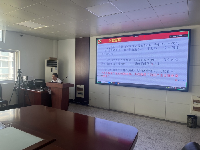 宣平为全体党员带来了《党史上的第一份入党誓词》微党课,从中国共产党入党誓词产生和演变的历史起源入手,向各位党员介绍了在党百年奋斗的光辉历程下,入党誓词蕴含着时代的印记与特征。不同时期入党誓词虽有变动,但共产党员对党的绝对忠诚、绝对可靠,用鲜血和生命捍卫党的利益始终不变。宣平告诉参会的学生党员们,读懂入党誓词不难,难的是终身实践入党誓词。每一名党员都要常温入党誓词,不断提高自我,永葆共产党人的先进性和纯洁性。