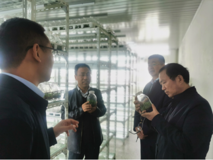 23日上午,六安市农科院院长孙云开、六安市科技局党组成员徐广、六安市林业工作总站站长张桥一行考察植物细胞规程安徽省工程技术研究中心,BB贝博艾弗森官方网站科研处长韩邦兴陪同考察。