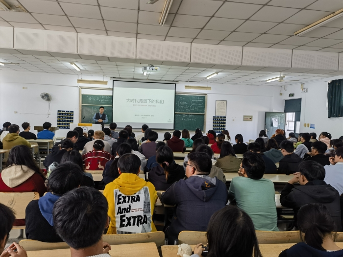 2004级动物科学专业校友付伟,在校期间就创办了六安市绿康综合农业有限公司,现任安徽八块钱网络科技有限公司董事长。11月24日下午C502教室,付伟结合党的二十大精神和自己的亲身经历进行了分享,作了题为“大时代背景下的我们”的报告,围绕新时代大学生的纪律、责任和担当,告诉同学们要将个人理想追求融入党和国家的事业中,让青春在火热实践中绽放绚丽之花。