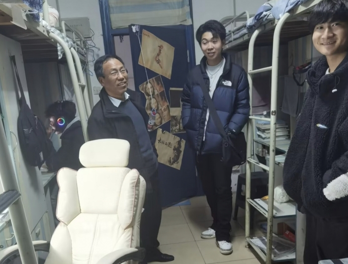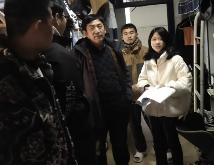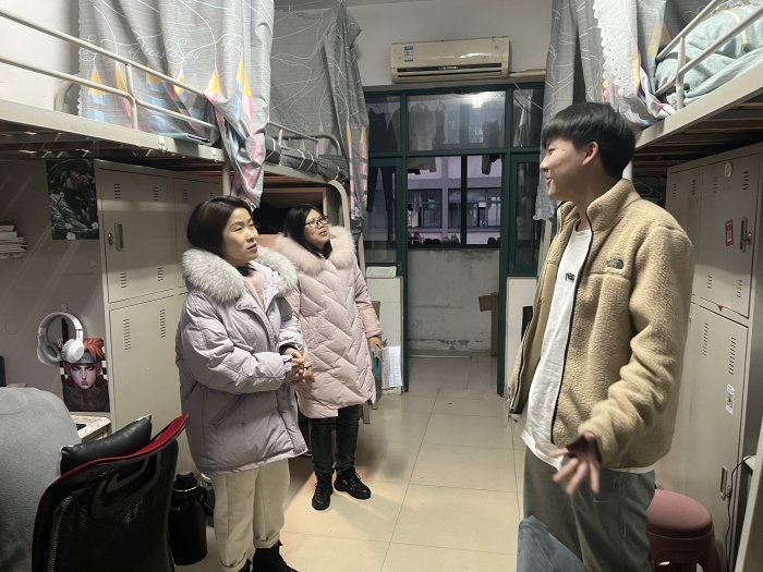老师们走进宿舍,叮嘱同学们增强安全防范意识,注意防火防盗,遵守《BB贝博艾弗森官方网站学生公寓安全管理办法》,禁止私拉乱接电线,禁止使用大功率电器;日常生活中要自觉维护宿舍安全,保持室内清洁,营造温馨的生活环境。在对宿舍安全卫生检查的同时,师生们面对面地沟通和交流,介绍健康生活小常识,提高了同学们的防病意识和自我防护能力,牢固树立并自觉践行“健康第一”理念,加强营养饮食、规律作息、适度运动和日常防护,出现症状应及时报告。在非毕业班宿舍,老师们关注同学们进入复习考试、正常学习和生活状态,以饱满的姿态迎接下周进行的秋学期期末考试。在毕业班宿舍,老师们宣传了学校实习就业相关政策及注意事项、大学生入伍政策,对学生们提出的研究生复试考试技巧、岗位信息获取渠道等问题进行解答与交流,师生互动气氛融洽。