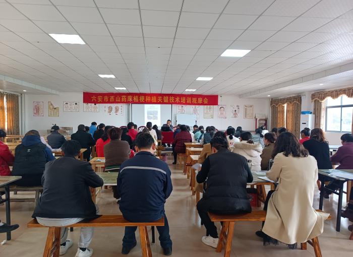 为着力提高西山药库范围内药农的桔梗种植技术,强化“十大皖药”示范种植基地建设,助推中药产业提质增效,3月16日,市“一谷一带办”、BB贝博艾弗森官方网站、大别山中医药研究院、国家中药材产业技术体系皖西综合试验站、六安市中药材产业协会一行深入舒茶县舒茶镇——舒城县杏林职业培训学校开展桔梗种植关键技术培训观摩会。