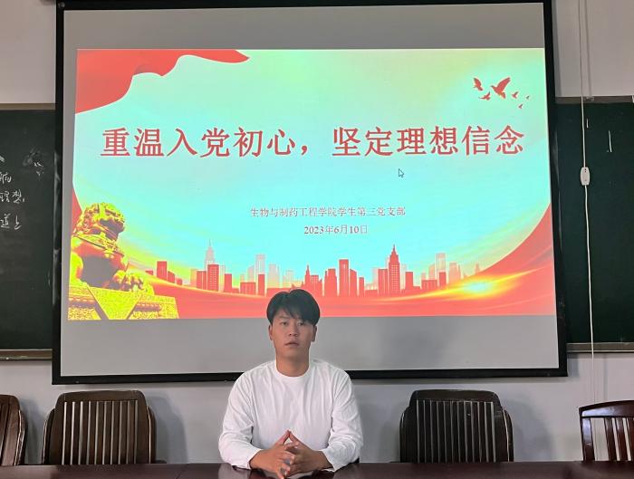 为深入开展学习贯彻习近平新时代中国特色社会主义思想主题教育,深化对中国共产党奋斗历程的了解,生工学院学生第三党支部于2023610日开展“学习红船精神,重温入党初心”主题党日活动。