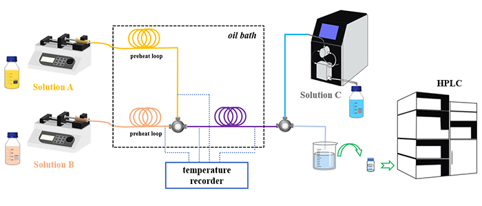 该论文选取奥拉帕尼为研究对象,经反应路线设计,利用绿色环保的酸胺偶联试剂实现了单酰化反应的高选择性,并通过在微反应器内单酰化反应本征动力学的研究揭示了反应历程,突破了单酰化反应选择性这一重要瓶颈。最终,在微反应器内25分钟即可实现奥拉帕尼的合成,且总收率达78%,相比目前已公开的专利及文献,显著提高了奥拉帕尼的合成效率,极大降低了反应成本和反应时间。该论文为奥拉帕尼仿制药的研发和产业化提供扎实的技术支持。